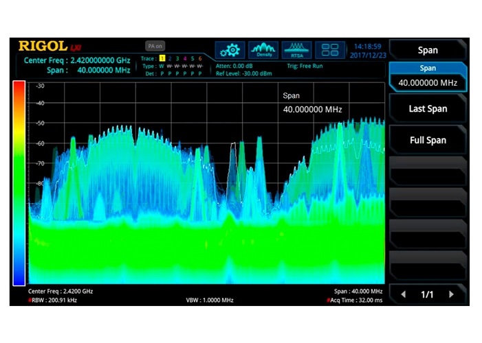Опция RSA3000-B25 позволяет увеличить полосу анализа у анализаторов спектра Rigol серии RSA3000 (RSA3030 и RSA3045) в режиме RTSA до 25 МГц. Минимальная длительность для гарантированного захвата сигналов 100% POI - 7,82 мкс. Разрешение (для окна Kaiser) от 62,8 кГц до 2,01 МГц. Активируется программным кодом.